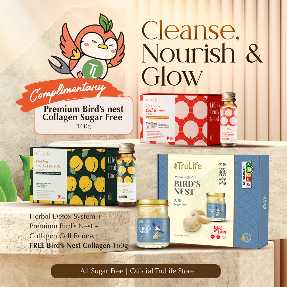 [Wellness Bundle Exclusive] TRULIFE Sugar Free Herbal Detox (10s x 50ml) + Collagen Cell Renew 15,000mg (10s x 50ml) + Premium Bird’s Nest Sugar Free (6s x 70g)