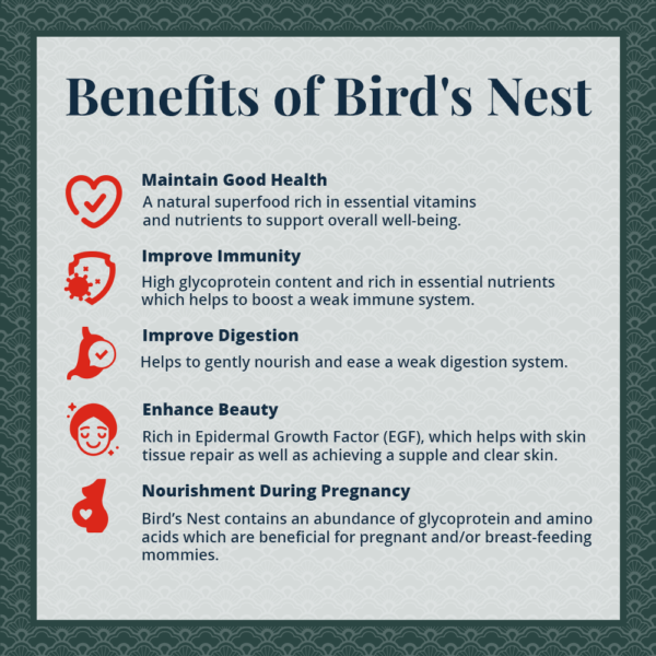 No Artificial Additives: We believe in the power of nature, which is why our formulation is free from artificial coloring, preservatives, and flavorings. Experience the authentic taste of bird’s nest, unadulterated by any additives.
